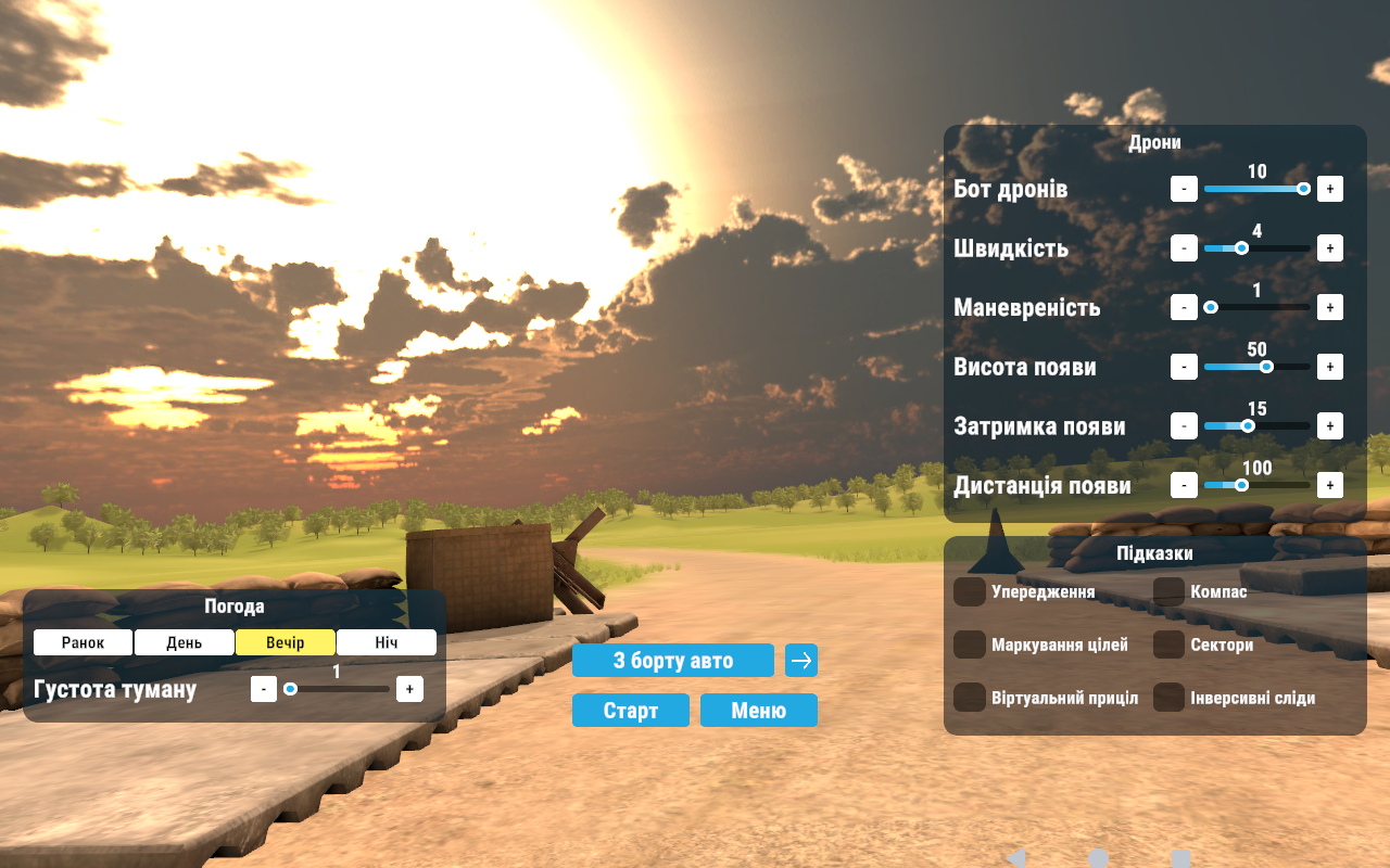 – формування навичок розпізнавання та виявлення дронів, в тому числі за звуком, в різний час доби, в різних погодних умовах;